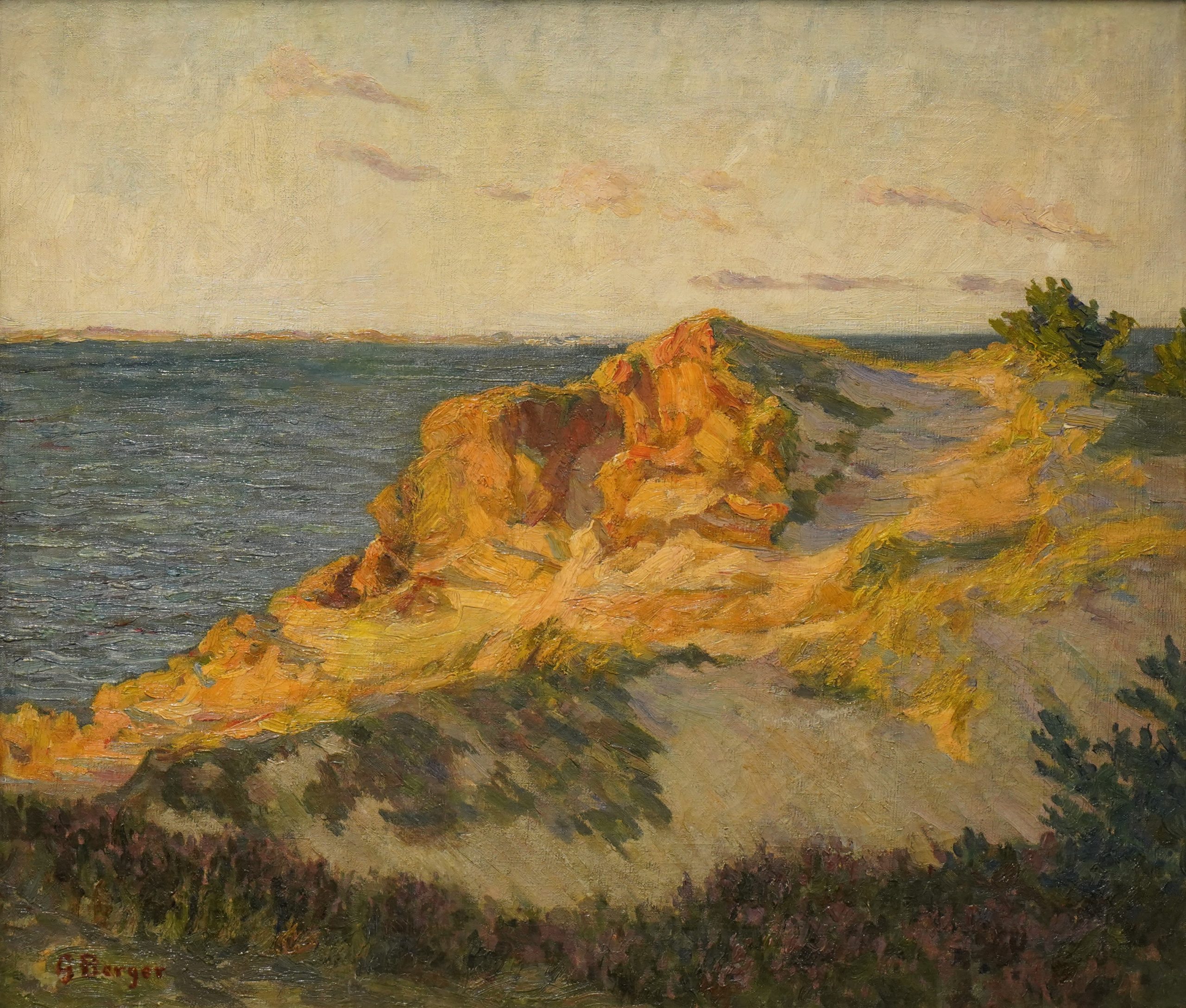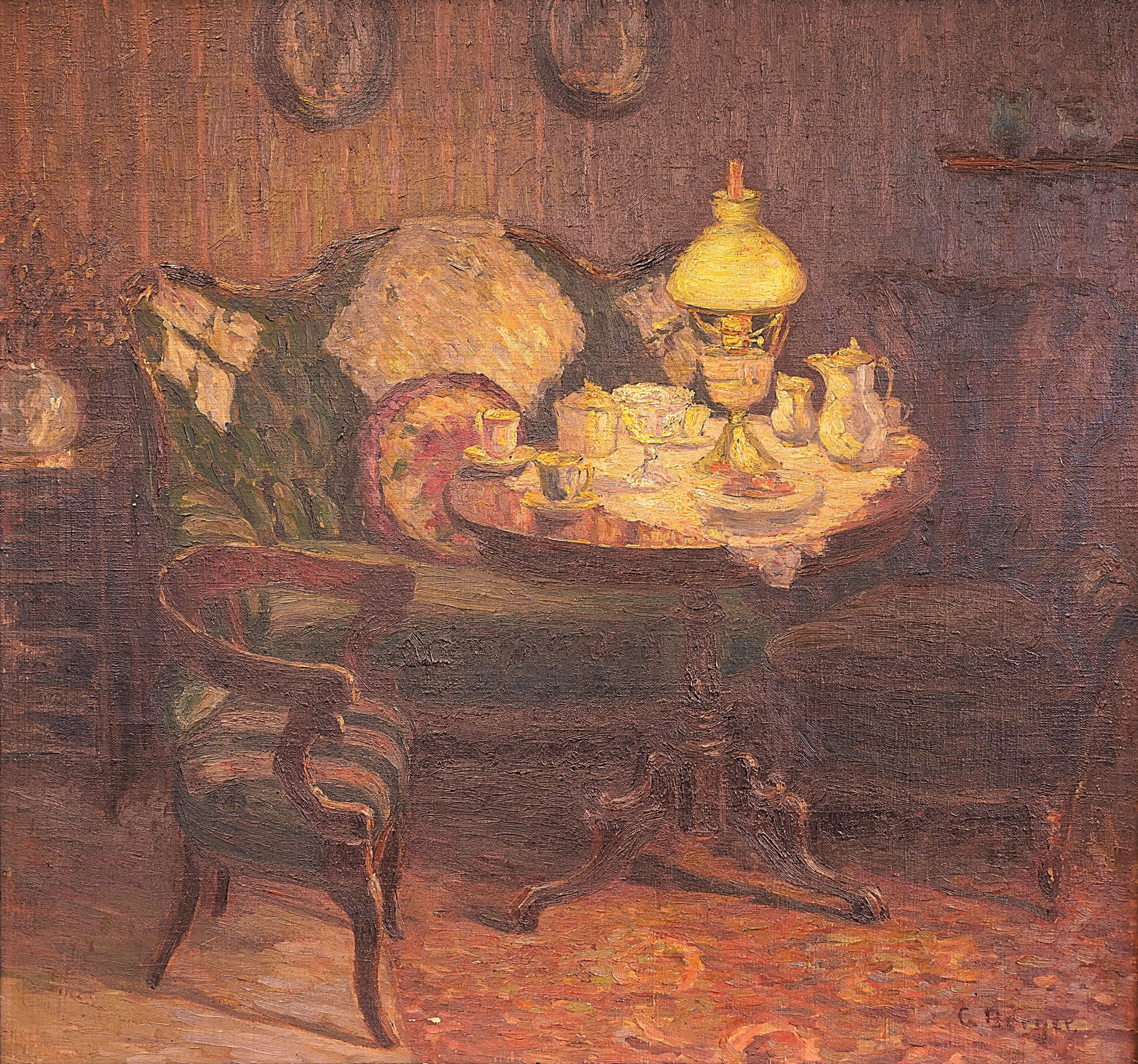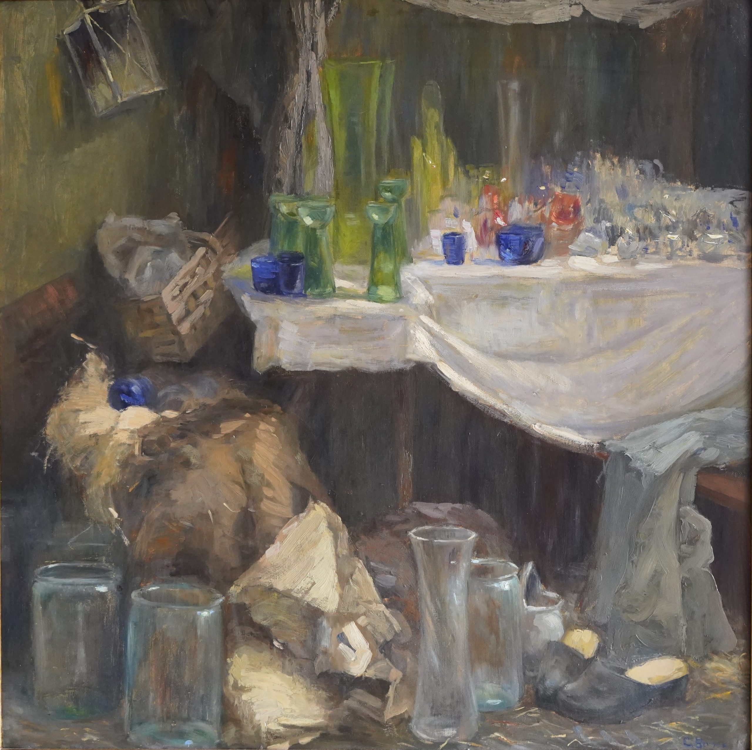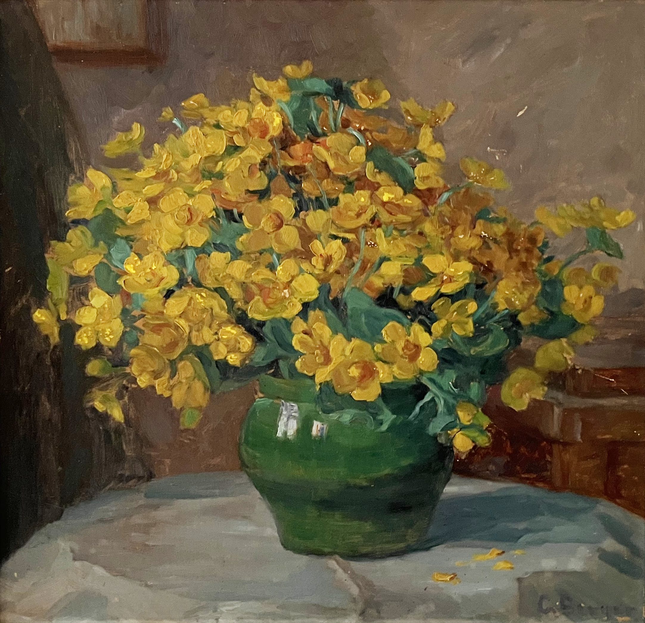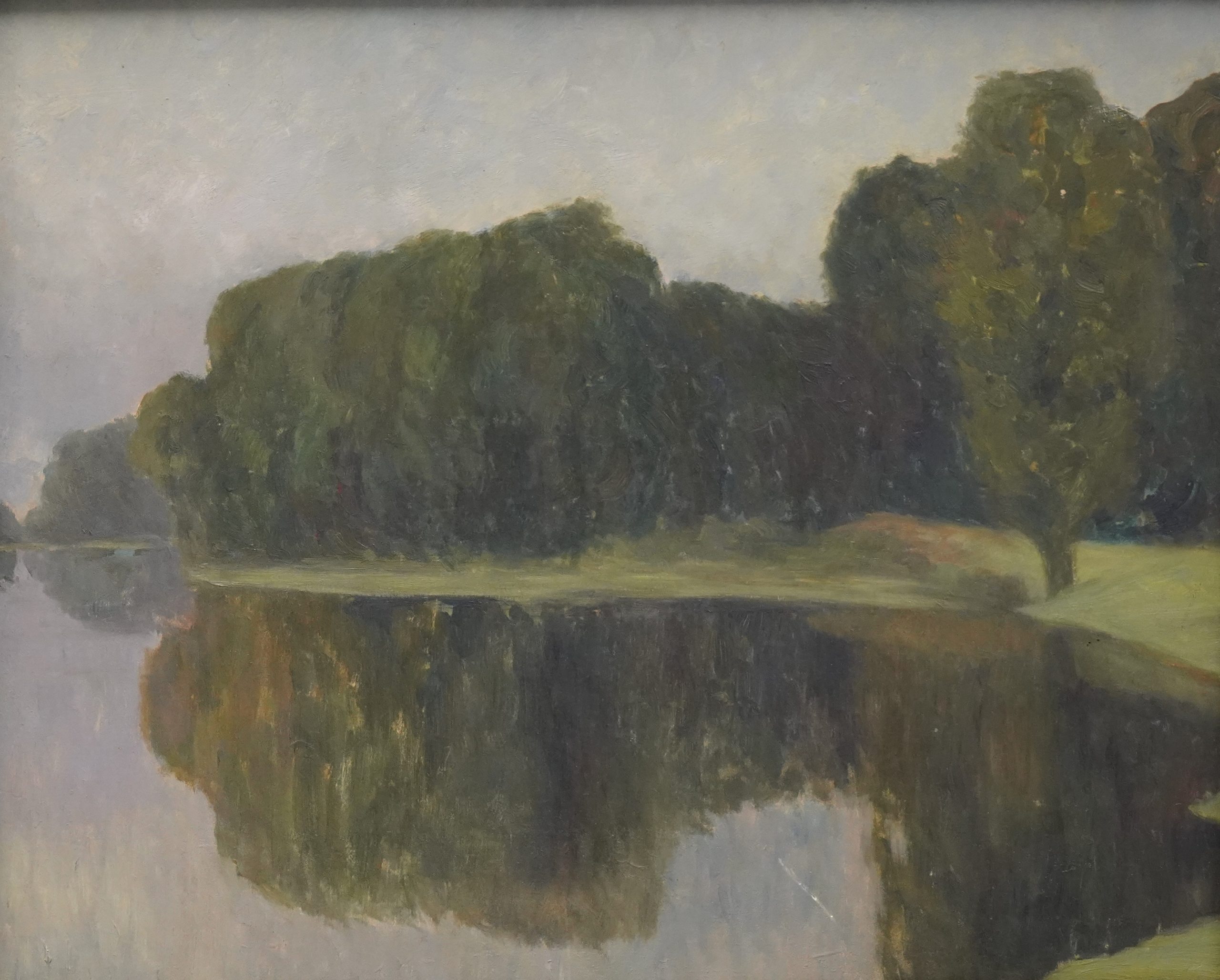 Papier / Bleistift koloriert. Glockenstuhl und Linde in Weitenhagen; kolorierte Federzeichnung; links im Vordergrund ein Glockenstuhl, rechts daneben eine alte knorrige Linde, dazwischen zwei Kreuze, im Hintergrund ist Friedhofstor sichtbar